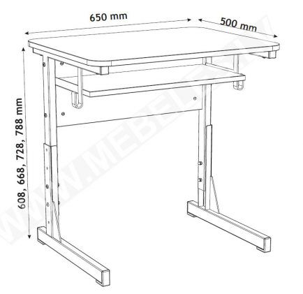 Vienvietis reguliuojamo aukščio stalas, užapvalintais kampais.