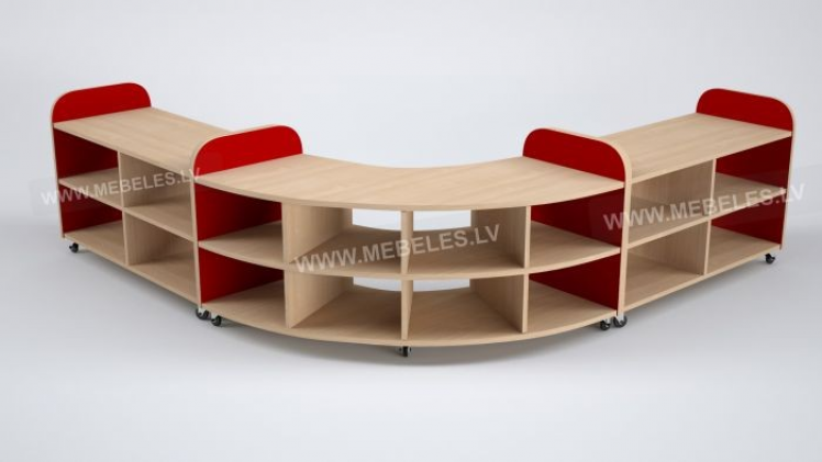 Специальная группа полок для детских садов. Полки изготовлены из высококачественной ламинированной древесно-стружечной плиты. Все углы полок